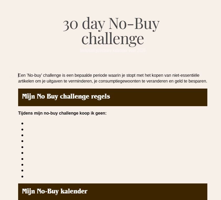 Klaar om je budget te resetten? Gebruik de gratis template om een No-Buy challenge van 30 dagen te starten.